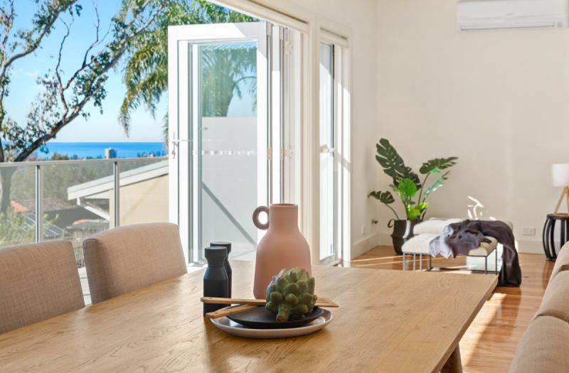 Glass louvres & concertina doors invite the views & elevated breezes