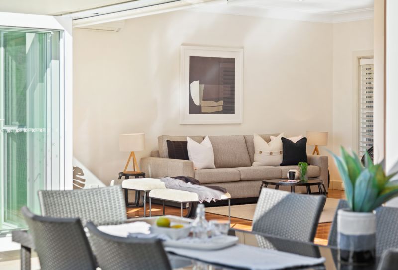 Rumpus room spills out to terrace enveloped with low maintenance gardens